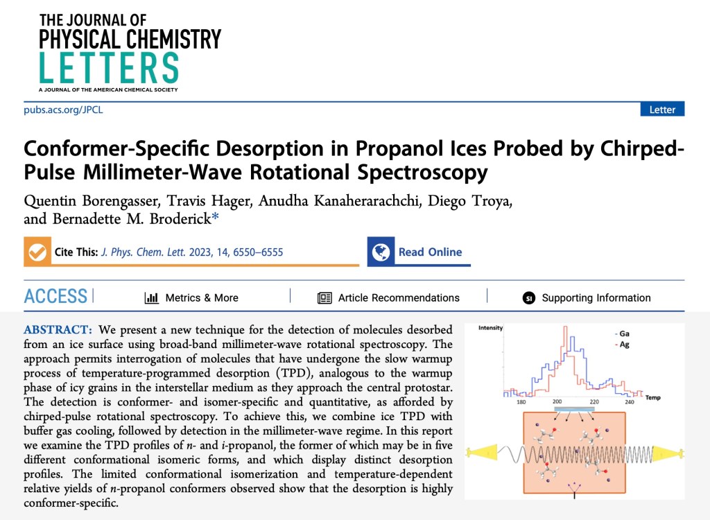 Given the structural-specific detection afforded by rotational spectroscopy, we have thus far captured several surprising results. For example, following desorption of a neat normal-propanol ice which contains 5 symmetry-unique conformational isomers, we find that sublimation is indeed conformer-specific — such findings should be considered in order to accurately understand sublimation dynamics, astrochemical models, and astronomical observations.